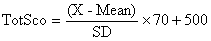 式中X表示每个考生加权、等值处理后的原始分数,Mean表示常模均值,SD表示常模标准差。