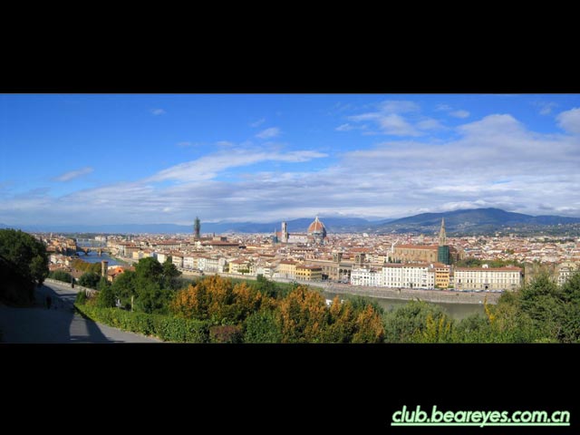 佛罗伦萨,美丽的翡冷翠。 佛罗伦萨是一个“人文”的都市,它注重人,把人放在首位,看重人的智慧、人的精神、人的创造力以及人的事业和成就。这里,艺术从覆盖着大街小巷的石块里渗透出来,从大小建筑物上的花岗岩和大理石的缝隙里流溢出来,散发在空气中,弥漫在城市的每一个角落。