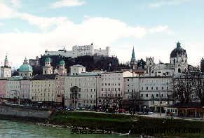 萨尔茨堡(Salzburg)是奥地利西北部萨尔茨堡州首府,濒临多瑙河支流萨尔察赫河,是奥地利北部交通、工业及旅游中心。这里是大作曲家莫扎特的出生地,素有“音乐艺术中心”之称。萨尔茨堡1077年设市,公元8世纪─18世纪为天主教大主教驻地和活动中心。1802年萨尔茨堡脱离宗教统治,1809年,根据《舍恩布龙条约》归巴伐利亚,维也纳会议(1814—1815年)决定归还给奥地利。这里的建筑艺术堪与意大利的威尼斯和佛罗伦萨相媲美,有“北方罗马”之称。城市分布在萨尔察赫河两岸,偎倚在白雪皑皑的阿尔卑斯山峰之间。城市被苍郁的陡山围绕,充满魅力。河右岸南山坡的霍尔亨萨尔茨堡(11世纪),历经900年风雨,仍巍峨挺立,是中欧地区保存最完好、规模最大的一座中世纪城堡。本尼狄克隐修道院建于7世纪末,长期以来是当地布道活动的中心。圣方济会教堂建于1223年。模仿罗马圣教堂的大教堂建于17世纪初,是奥地利第一座意大利式的建筑。大主教宅邸是16—18世纪的一座文艺复兴式宫殿。米拉贝尔宫原是17世纪为萨尔茨堡大主教建造的皇宫,18世纪又经扩建,现在是包括宫殿、教堂、花园、博物馆等的游览中心。城市南部是17世纪建造的皇家花园,以“水的游戏”著称。花园内建筑物的门旁檐下,道路两旁都有暗道水管不时喷射,水花飞溅,雨帘雾障。走进花园内一座人工堆砌的山洞,潺潺的流水发出了26种鸟鸣的声音,组成一曲悦耳动听的空山鸟语。在一处由机械装置控制的舞台上,通过水流的作用,156个活动小人再现了这里300多年前小镇生活的情景。走进萨尔茨堡,无处不见莫扎特的踪迹。1756年1月27日,大作曲家莫扎特出生在城中粮食街9号。1917年莫扎特的故居被辟为博物馆。
