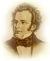 弗朗兹·舒柏特(Franz Schubert,1797-1828):作曲家、浪漫主义音乐的开创者之一。生于1797年1月31日,父亲是维也纳近郊的一所小学的校长,有19个孩子,舒柏特最小。他自幼喜欢音乐,8岁开始随父、兄学习提琴和钢琴,11岁时进入免费寄读的神学院合唱团。1811年创作第一首歌曲《哈加尔的悲哀》,16岁到他父亲的小学里当教员。他一边教课、一边进行音乐创作。17岁为歌德的诗篇《纺车旁的葛莱卿》、《野玫瑰》等谱曲。18岁那年,一天午后,他拿起歌德的叙事诗《魔王》来读,忽然心情激荡,一小时后,脍炙人口的世界名曲《魔王》诞生了。这首名曲,立即轰动了维也纳,使他从此走上音乐创作之路。舒柏特只活了33岁,但他一生却写了634首艺术歌曲。此外,他还写了8部交响曲、一些重奏、奏鸣曲,即兴曲和其他音乐作品,《小夜曲》以其深情、优美为世人所赞赏。舒伯特采用和声上的色彩变化,用各种音乐体裁形式来刻划个人的心理活动,富有大自然的和谐和生命力的气息,他将瞬息间的遐想行之于乐谱,把感受到的一切化为音乐形象,构成了他独特的浪漫主义的旋律。他很崇拜贝多芬,1822年,舒柏特带着新发表的作品去见贝多芬,恰好贝多芬出去了。后来贝多芬在病中发现这首曲子,说“这作品充满了神奇的火花”。可是,当舒柏特再去拜见贝多芬时,贝多芬已病危不能说话了。舒柏特临终时要求亲友将他葬在贝多芬旁边,现在他俩的铜像并立在维也纳广场上。