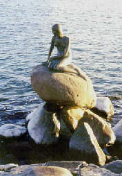 名胜:“美人鱼”铜像(Little Mermaid)位于丹麦首都哥本哈根朗厄里尼港入口处的一块巨大鹅卵石上,它是丹麦雕塑家埃德华·埃里克森于1912年根据安徒生童话《海的女儿》中的女主角用青铜雕铸的。“小美人鱼”是丹麦童话作家安徒生于1837年所写的一篇童话《海的女儿》中的主角。她是海王最小的女儿。她15岁时,一位王子所乘的船触礁沉没,她救了王子并倾心于他。但是王子已与另外的女子订有婚约,而离开了她。然而,痴情的“小美人鱼”仍然日复一日地坐在海边的岩石上,等待王子归来。埃里克森利用了丹麦皇家剧院芭蕾舞演员埃伦·普赖斯的形象作为模特,但是他没能说服这位女演员为制作这一铜像而裸体,这不得不迫使他让自己的妻子充当裸体模特。这尊5.3英尺高的铜像同真人一般大小,整个人鱼直到小腿都是人形,只是脚变成了鱼鳍。铜像于1913年8月23日被安置在哥本哈根港,现已成为丹麦的象征。但“美人鱼”铜像曾多次遭受厄运:1961年,有人用白颜料给“美人鱼”画上胸罩;1963年,美人鱼全身被涮了一层红颜色;1964年,铜像第一次被“割去”了头部;幸好雕刻家埃里克森保存着模具,又重铸了一个头像;1984年7月22日清晨,“美人鱼”右臂被人锯走一截,当晚两个年轻人向警察投案自首,警方以破坏公物罪对其提出起诉;1990年又有人试图盗头未果;1998年1月5日,“美人鱼”雕像头部又一次被人盗走。2003年9月,“美人鱼”青铜雕像又遭厄运 。2006年3月,哥本哈根市政府决定将美人鱼雕像向深海处搬迁,原因是过多的游客对雕塑造成太多的破坏 。