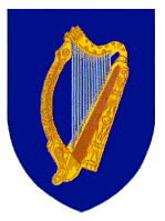 国徽:为盾徽。天蓝色的盾面上绘有金黄色的竖琴。蓝色象征大海和天空,竖琴为爱尔兰人民喜爱的“天使之琴”。