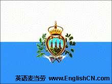 国旗:呈长方形,长与宽之比4∶3。自上而下由白色和浅蓝色两个平行相等的横长方形组成,旗地中央是国徽图案。白色象征白雪,还象征纯洁;浅蓝色象征蓝天。圣马力诺国旗有两种,上述为官方和正式场合用旗,非正式场合则用无国徽国旗。