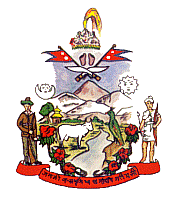 国徽: 由多组具象征意义的图案组成,主要有喜马拉雅山、河谷、太阳和星月标志,以及河两旁的国兽白牛、国鸟绿雉和国花红杜鹃。山脉之上的图案由廓尔喀人用的腰刀、佛脚印、国旗、皇冠等组成。中心图案两旁是手执武器的士兵,下面的红色绶带上用梵文写着“祖国胜于天堂”。